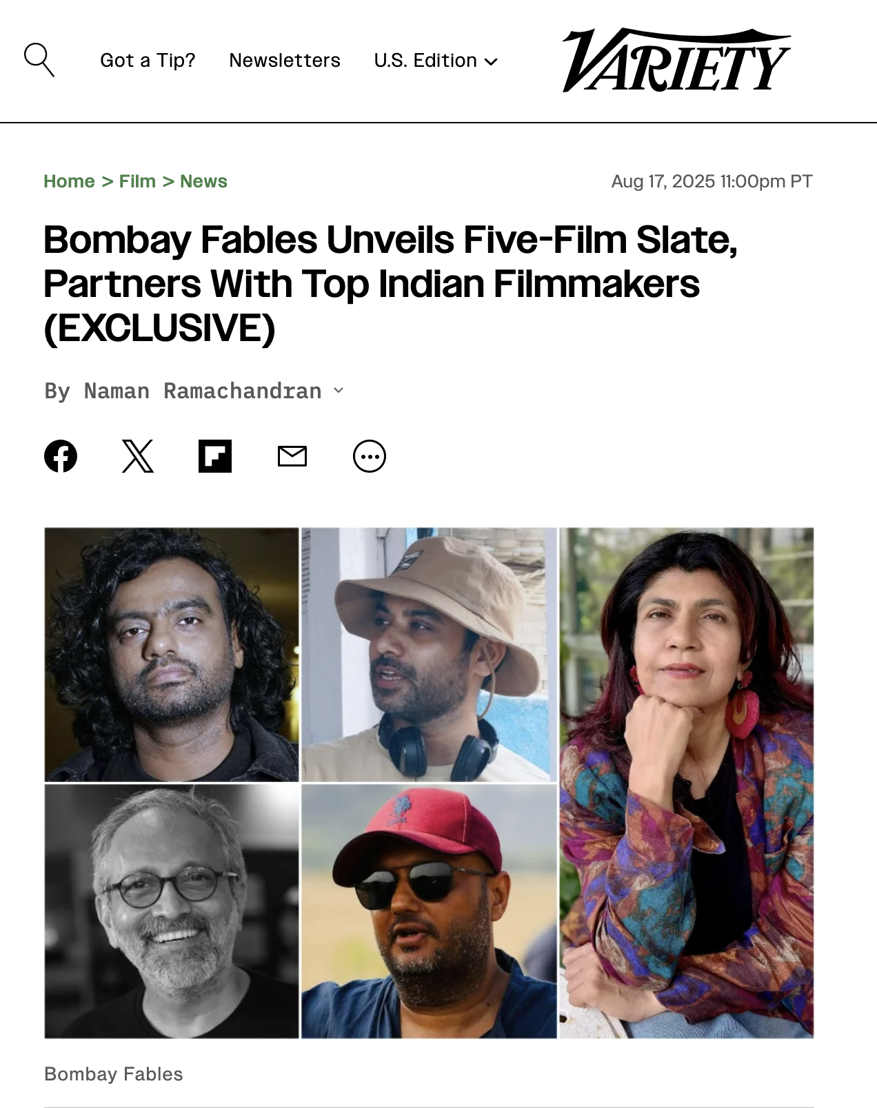 Bombay Fables is a boutique production house founded by National Award- winning writer Bhavesh Mandalia, a former software engineer, and Sejal Shah, a former journalist. The company is dedicated to quality storytelling and has quickly established itself as a hub for creators who bring great stories to life with passion, integrity, and style. Currently, Bombay Fables is producing series for leading international platforms and films featuring remarkable and exciting talent.